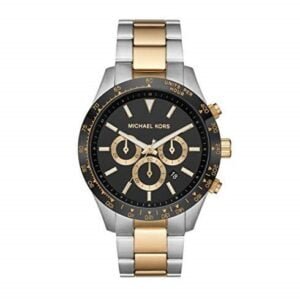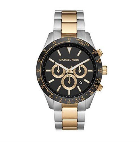 - Round stainless steel case with a black dial two-Tone stainless steel bracelet with deployant closure
