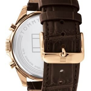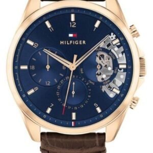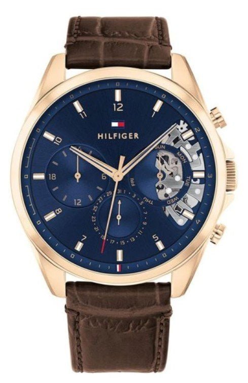 Brown Leather Strap Blue Dial Chronograph Quartz Watch for Gents